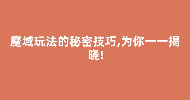 好的,以下是为您生成的关于《魔域》玩法的秘密技巧文。
