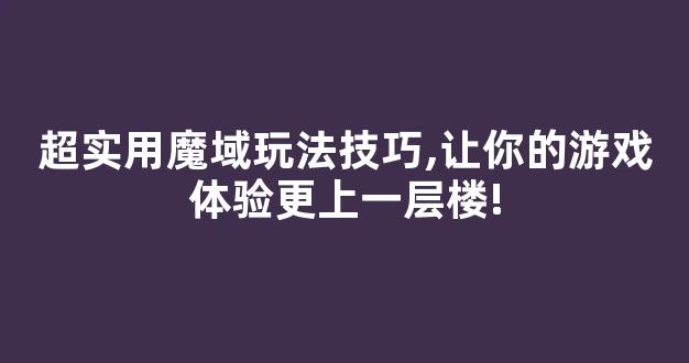原标题:超实用魔域玩法技巧,让你的游戏体验更上一层楼!